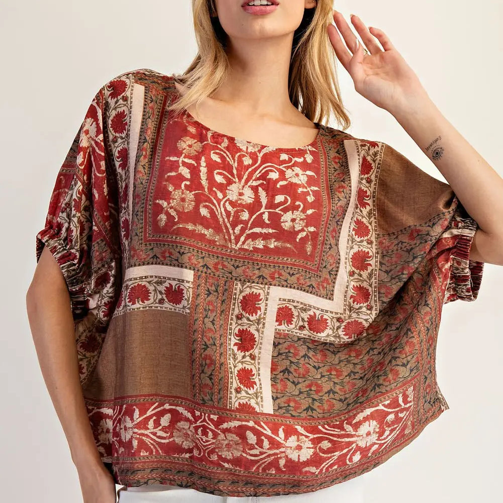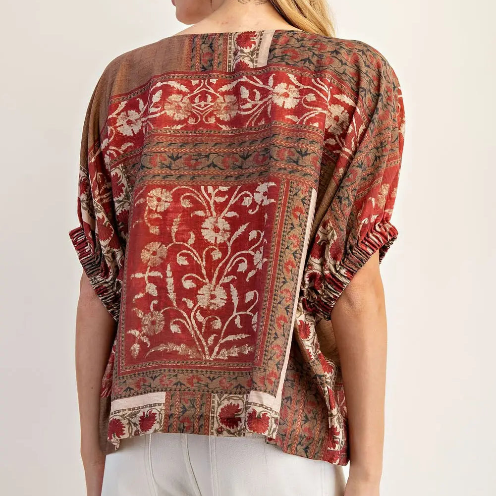 Chocolate Solid Short Bubble Sleeve Featuring Multicolor Band Finish