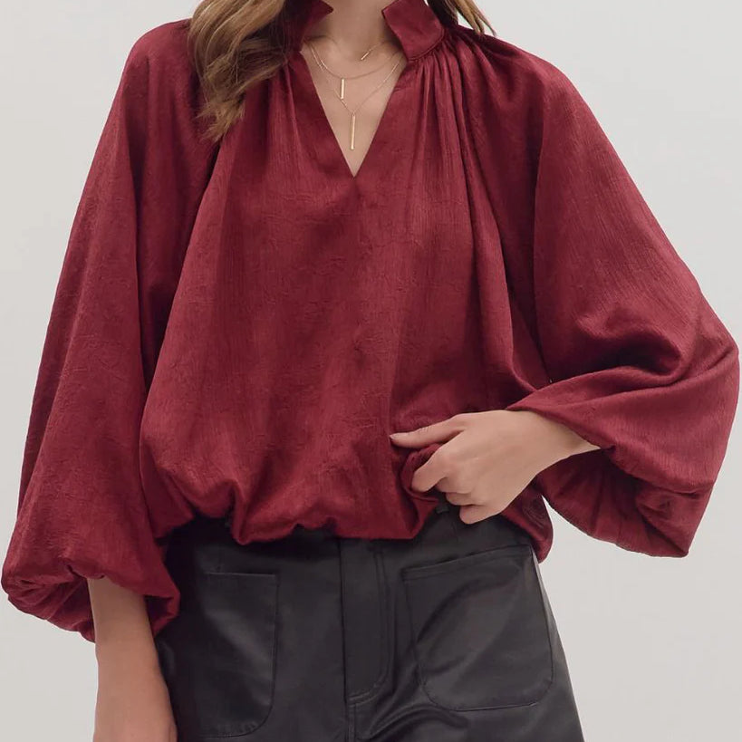 BLACK SEQUIN PUFF SLEEVE BLOUSE