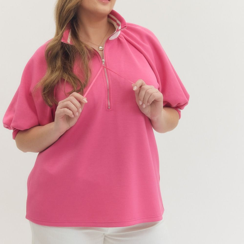 Solid Short Puff Raglan Sleeve Knit Top