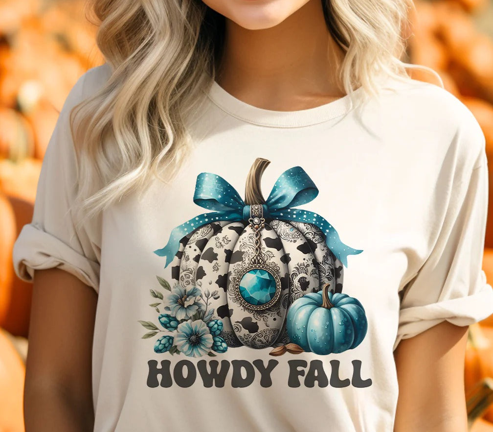 Bring some playful fall fashion to your wardrobe with our Blue Pumpkin Bling Embellishments Tee! This tee features a unique design with a blue pumpkin and bling embellishments, adding a touch of fun and sparkle to any outfit. Perfect for embracing the season with a quirky twist.
