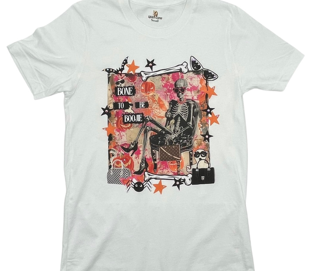 Be boujie, be bold, be blingin' with our Bone To Be Boujie Tee. This quirky tee features dazzling bling embellishments that will elevate your style to the next level. Perfect for those who like to add a touch of humor and sparkle to their wardrobe. Get ready to turn heads and embrace your true boujie self. (Limit 1 exclamation point)