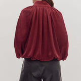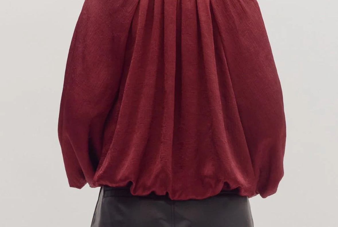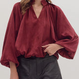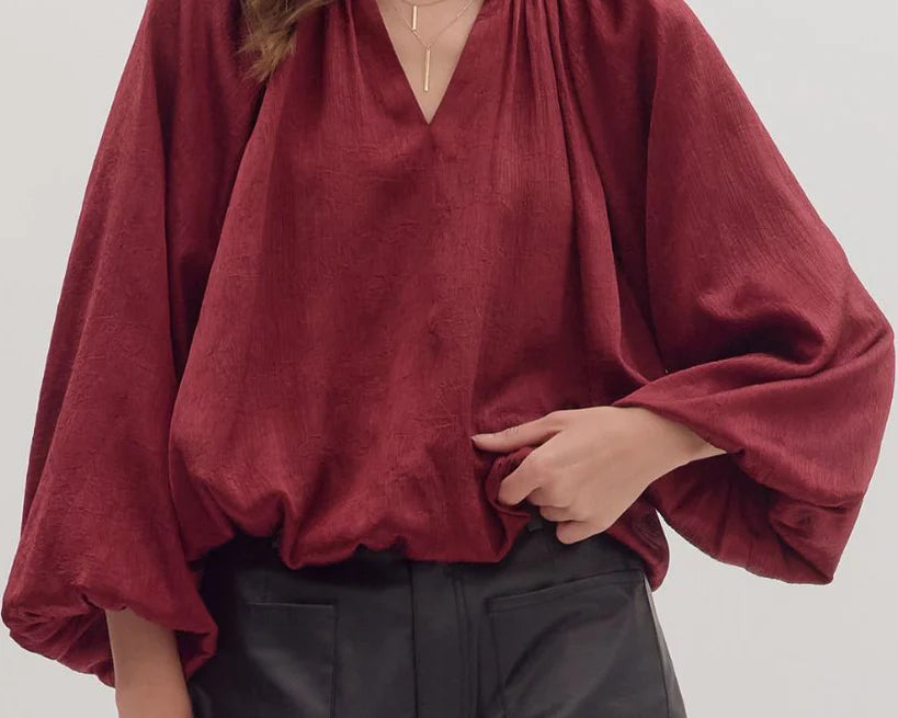 Burgundy Balloon Sleeve V-Neck Top