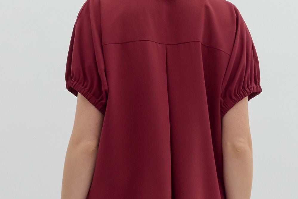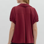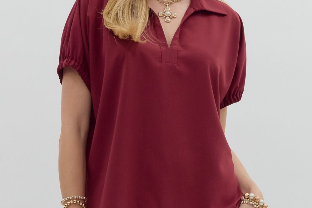 Burgundy Short Sleeve Split Collar Top