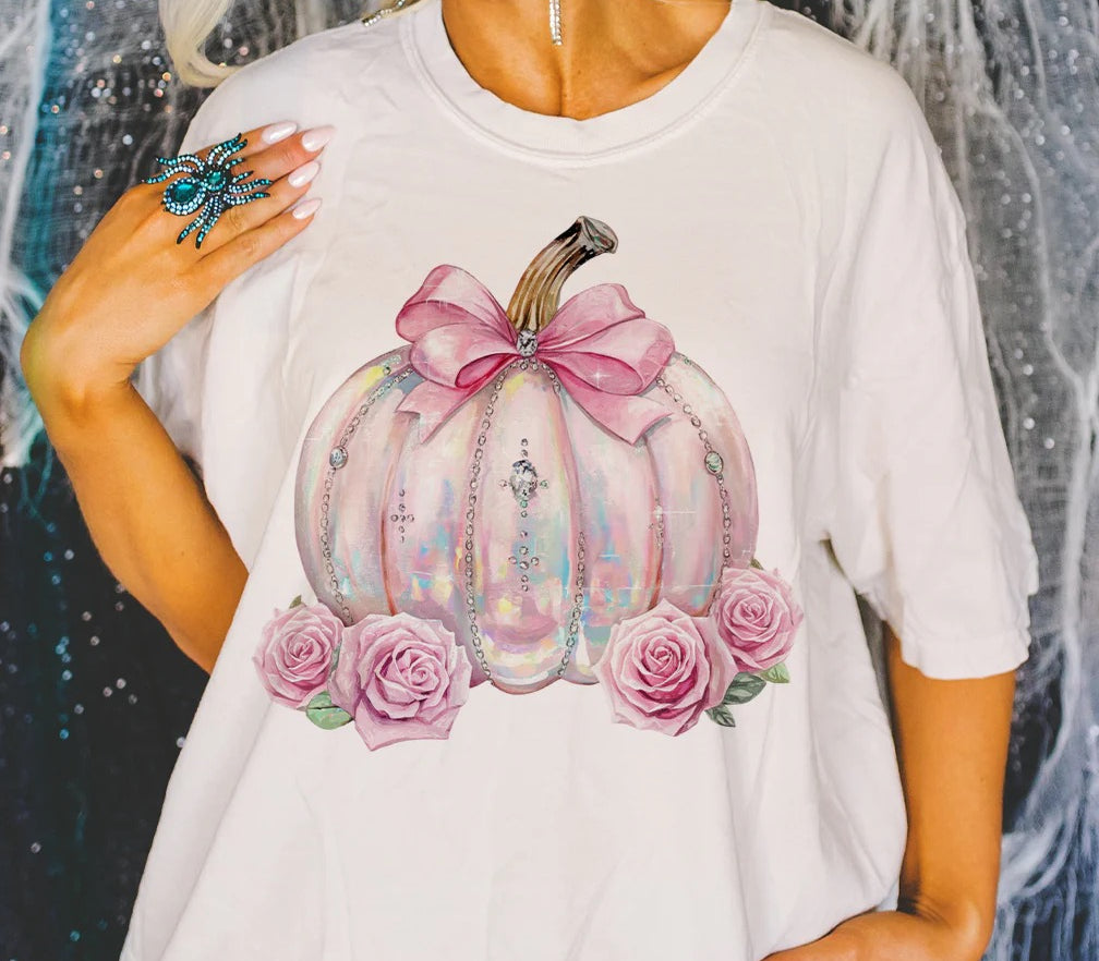 Get the royal treatment with our Cinderella Pumpkin Nat Bling Tee! This unique tee features a blinged-out Cinderella pumpkin design, adding a touch of magic to your wardrobe. Perfect for any princess (or prince!) looking to add some fun and sparkly style to their outfit.