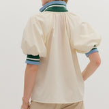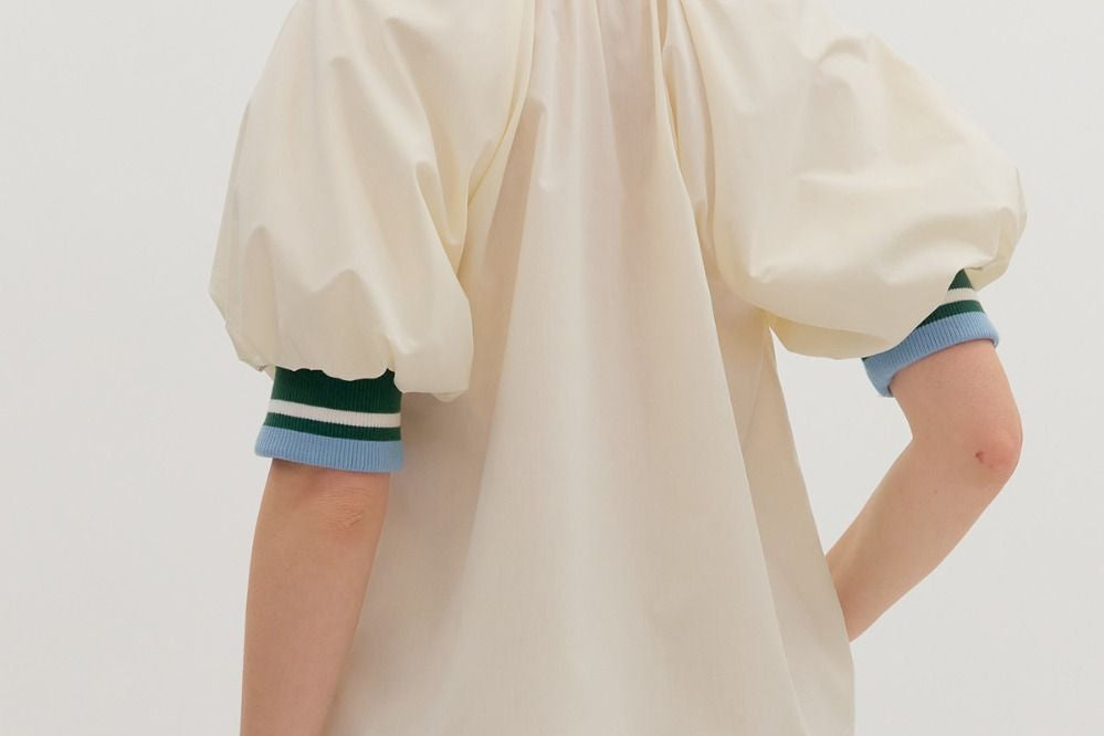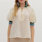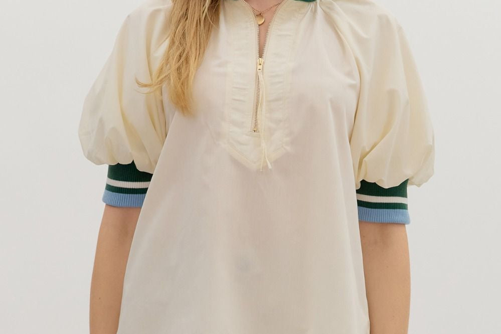 Cream Colored Zip-Front Closure Elbow-Length Sleeve Top