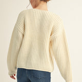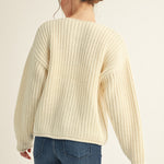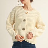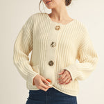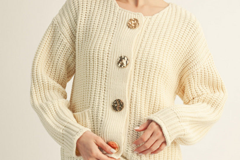 Wrap yourself in cozy charm with our Drop Shoulder Button Down Sweater Cardigan. Made from 100% acrylic, this cream-colored cardigan features a unique button accent and convenient pockets. Perfect for chilly days, this sweater is both functional and stylish. (Warning: may cause excessive hugging.)