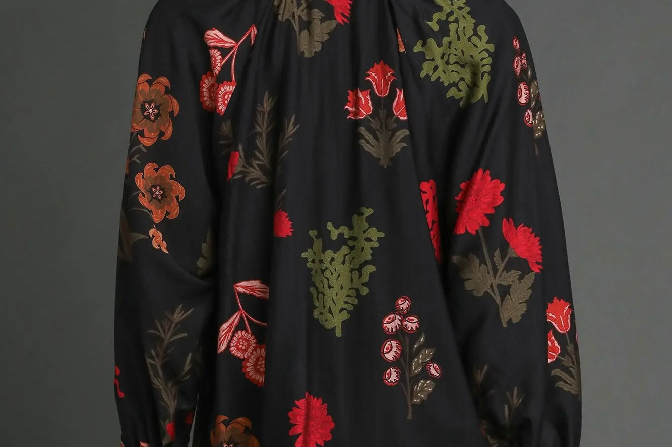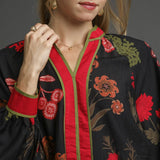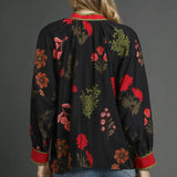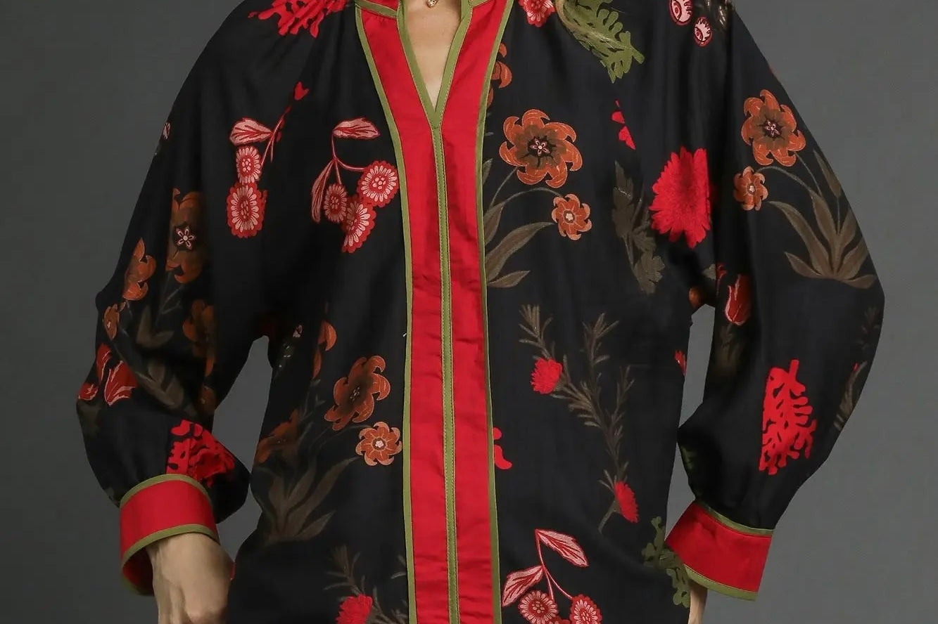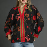 Get ready to add a playful pop of color to your wardrobe with our Floral Mandarin Collar Blouse! With its contrast trim, long sleeves, and mandarin collar, this lined blouse is the perfect mix of chic and fun. Made with a soft and lightweight fabric blend of rayon and nylon, it's both comfortable and stylish.