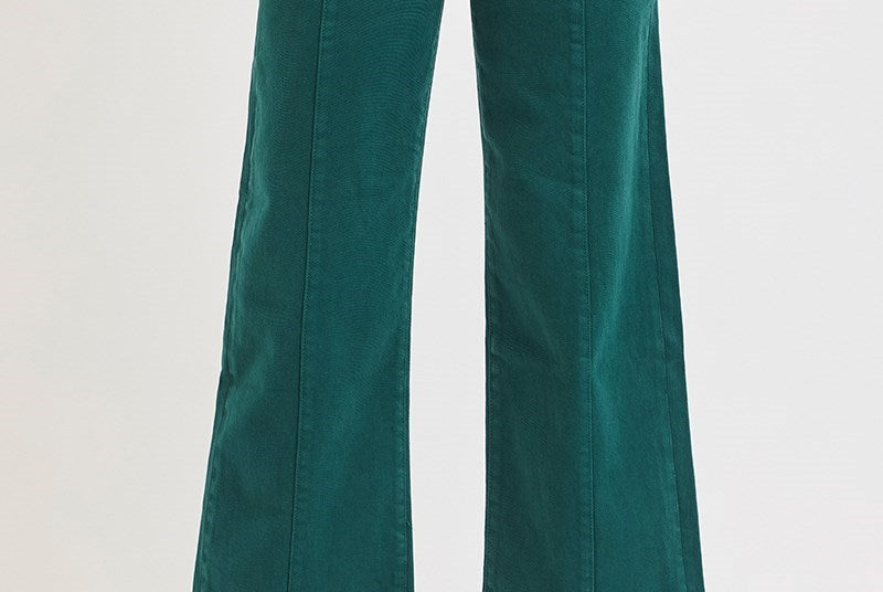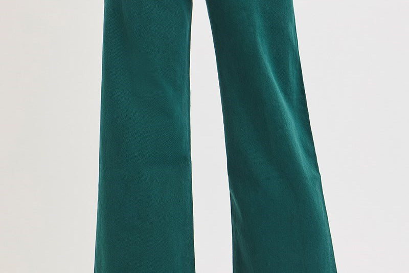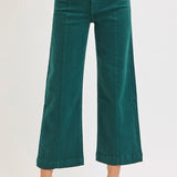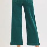 HUNTER GREEN TUMMY CONTROL HIGH RISE CROP WIDE PANTS