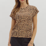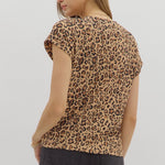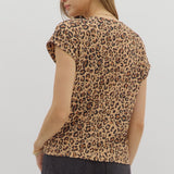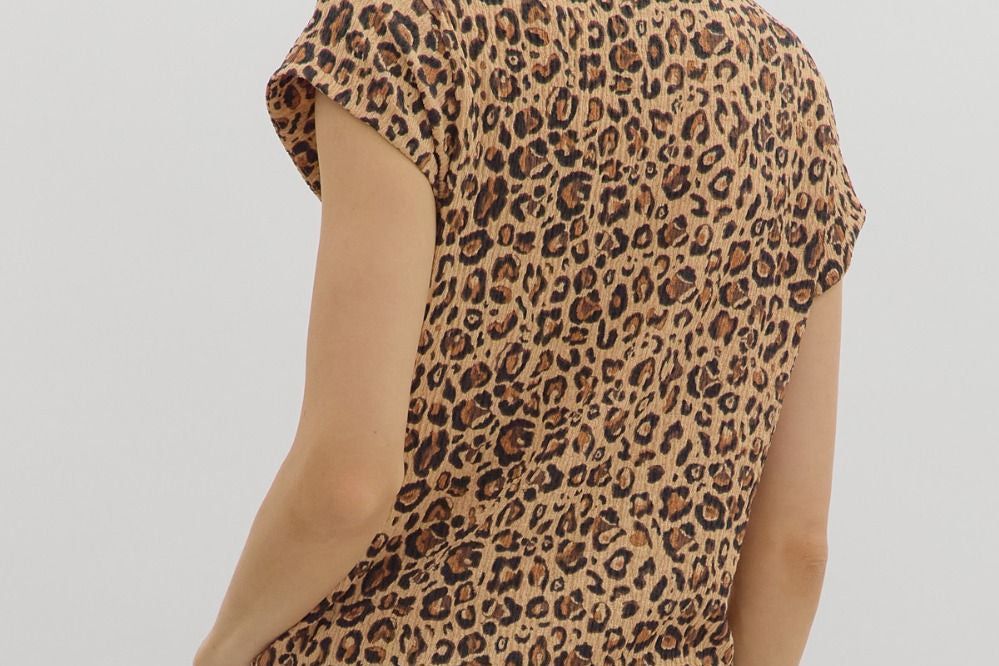 Leopard Pattern Textured Cap Sleeve Pullover Top
