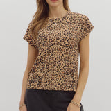 "Unleash your wild side with this leopard patterned cap sleeve top! Made of lightweight, non-sheer knit fabric, it's perfect for any occasion. The textured design adds a touch of playfulness to your look. Made with 95% polyester and 5% spandex for a comfortable fit. (Roar-ing approval guaranteed!)"