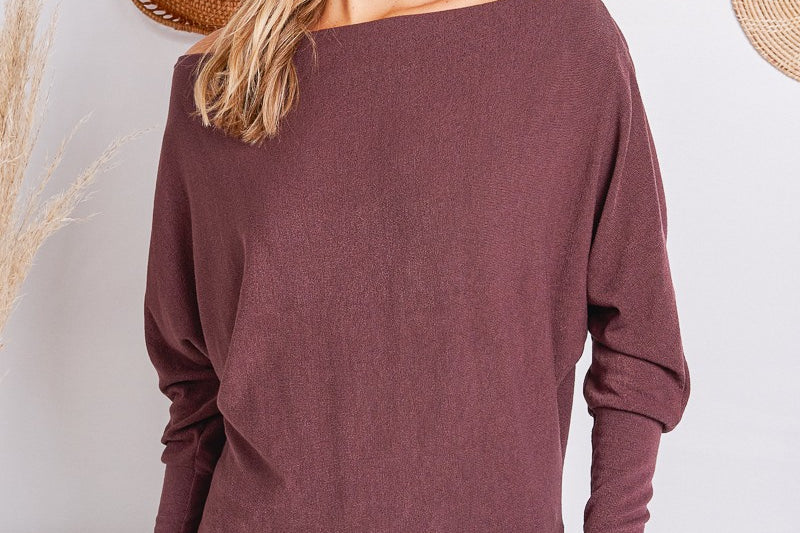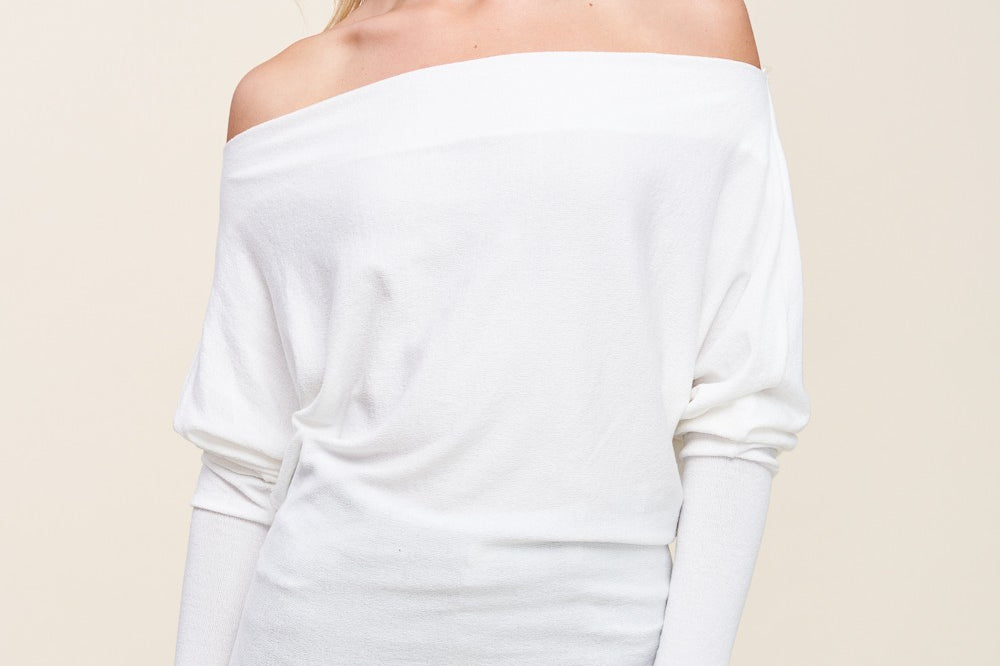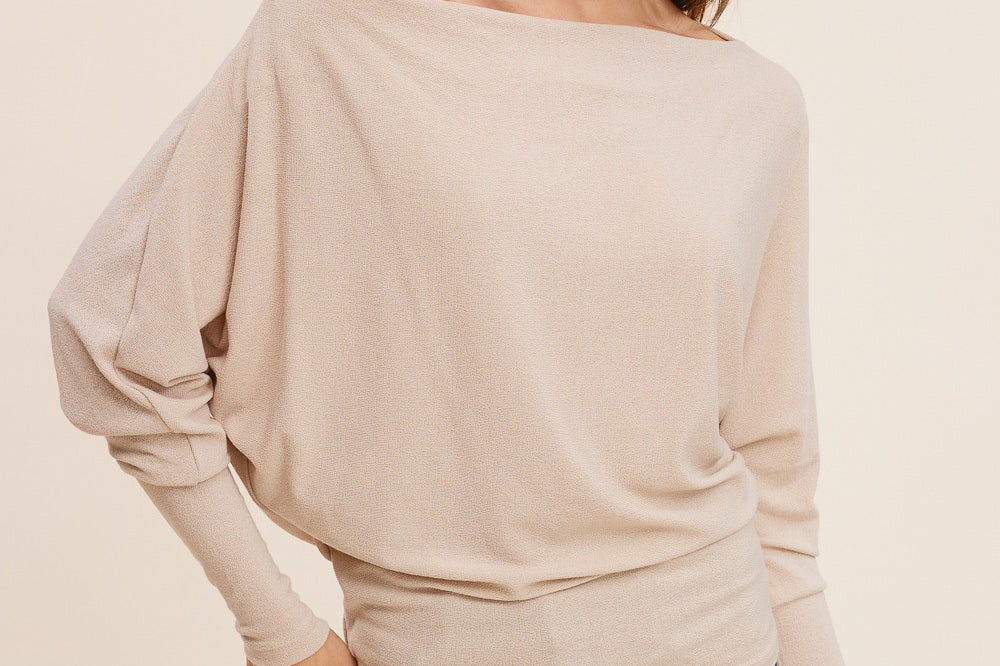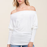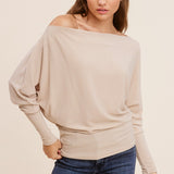 A forever favorite for a reason. The Off Shoulder Crepe Hacci Top is one of our all-time best sellers, designed in our signature crepe hachi fabric for a soft, textured feel with subtle stretch. The slouchy, off-shoulder silhouette flatters every shape, while the wide neckline and draped fit add just the right amount of attitude. Dress it up or down-this one does it all. Available in three colors; taupe, raisin and off white.