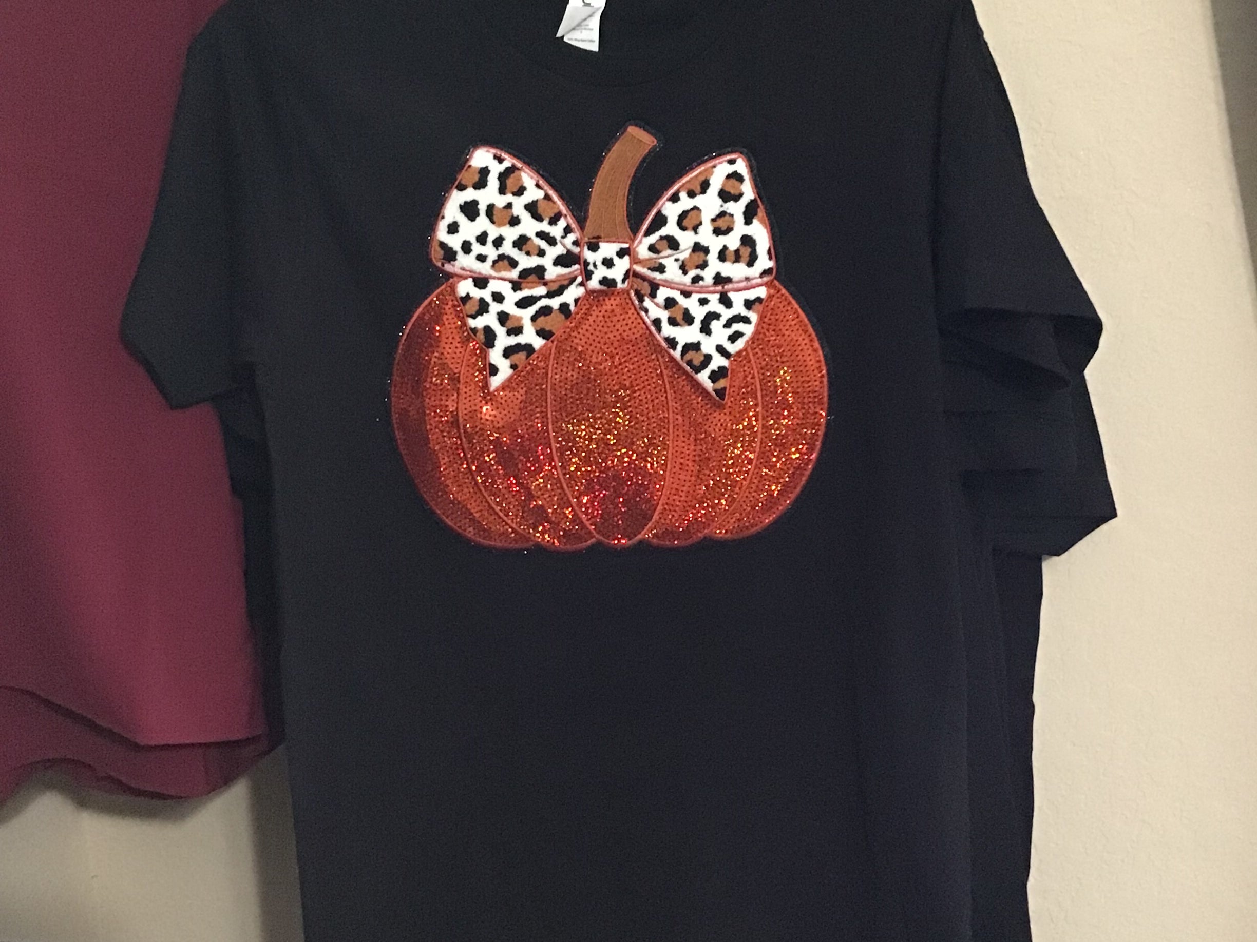 Get ready to celebrate Halloween in style with our Pumpkin Halloween Tee! This bold and playful tee features a sequin pumpkin adorned with a fierce leopard bow on a classic black background. Perfect for adding a fun and quirky touch to your holiday wardrobe. (Boo-tiful addition to any outfit!)