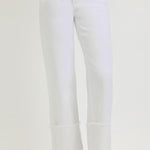 WHITE TUMMY CONTROL MID RISE CROP WIDE LEG WIDE CUFFED PANTS