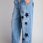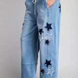 Star Patch Straight Leg Denim Pants